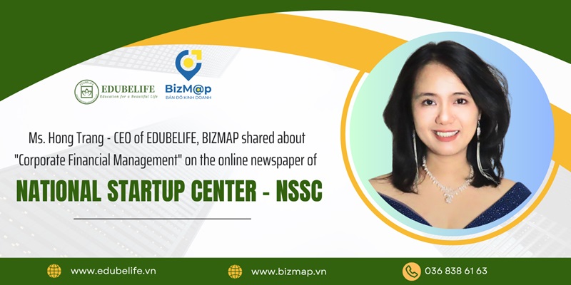 Ms. Hong Trang - CEO of EDUBELIFE, BIZMAP shared about "Corporate Financial Management" on the online newspaper of the National Startup Center - NSSC NSSC is the National Center for Innovative Startup Support. This is a public science and technology organization under the Department of Market Development and Science and Technology Enterprises - Ministry of Science and Technology. NSSC's main mission is...